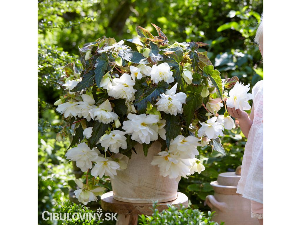 Najobľúbenejšie kvetinové a terasové kvety do tieňa. Záplava kvetov, istota kvitnutia a ľahké pestovanie. Hľuzy najlepšie vysadíme už na jar (od februára do apríla) veľmi plytko do kvetináča alebo hrantíka a von ich umiestnime až v polovici mája. Pri výsadbe rovno von v priebehu mája tiež skvele kvitnú, ale trochu s oneskorením. Potrebujú zatienenie a ľahšiu zeminu s pieskom, milujú časté hnojenie. V priebehu septembra až októbra hľuzy narastajú a chystajú sa na zimný odpočinok, je dobré ich nechať vonku až do prvých mrazov a potom ich umiestniť v bezmrazej miestnosti. Najlepšie je vybrať zo zeme, zabaliť do novín a umiestniť v suchej, chladnej miestnosti do 10 ° C kde ľahko prezimujú. Dodávame hľuzy bez listov a koreňov.