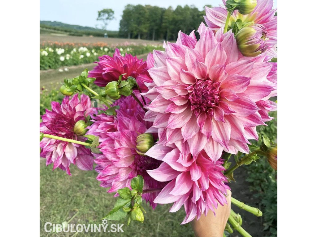 Georgína ‘Café au Lait Royal’ je kráľovnou medzi jiřinami – veľkolepé, plné kvety v jemných krémovo-ružových až púdrových tónoch pôsobia luxusne a nadčasovo. Elegantná farebnosť sa mení podľa svetla aj fázy kvetu, vďaka čomu je každá rastlina originál.