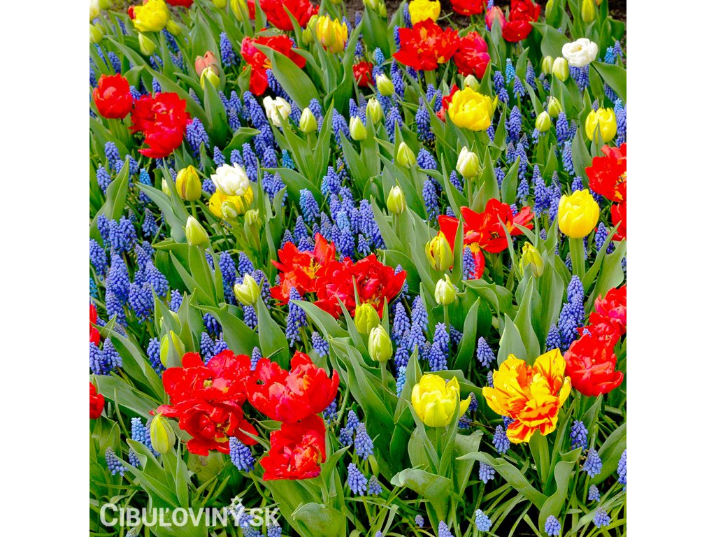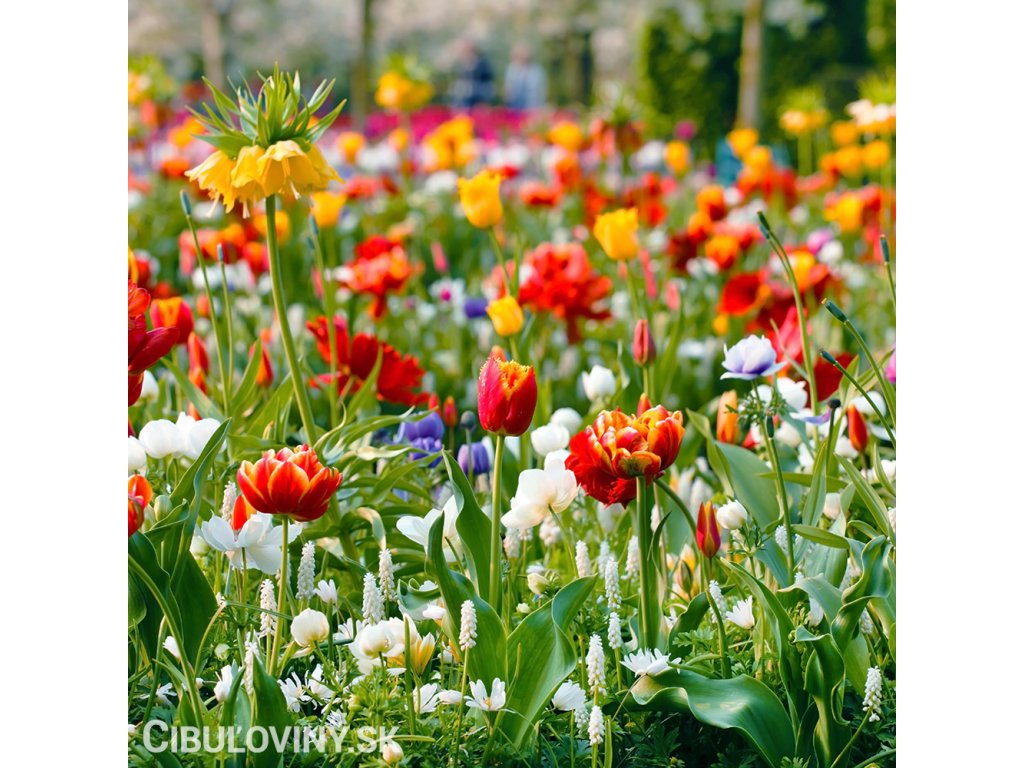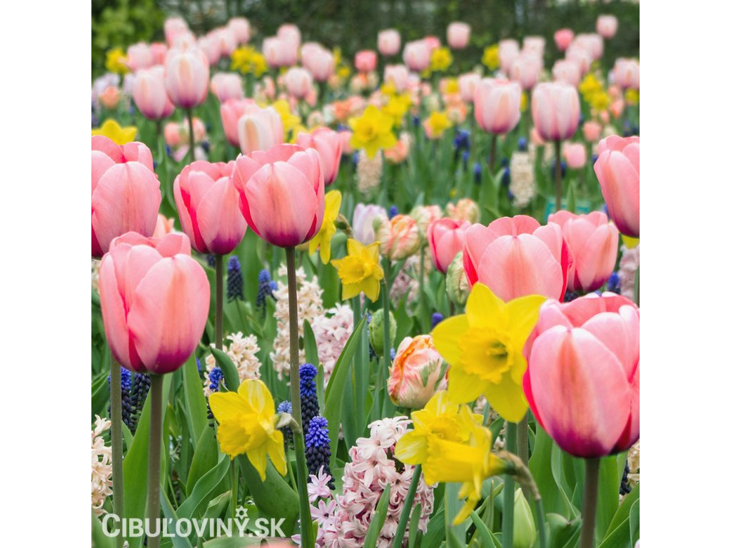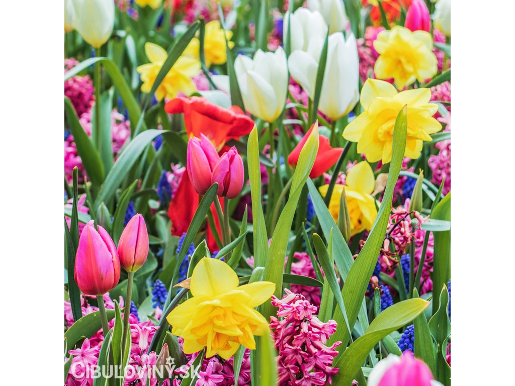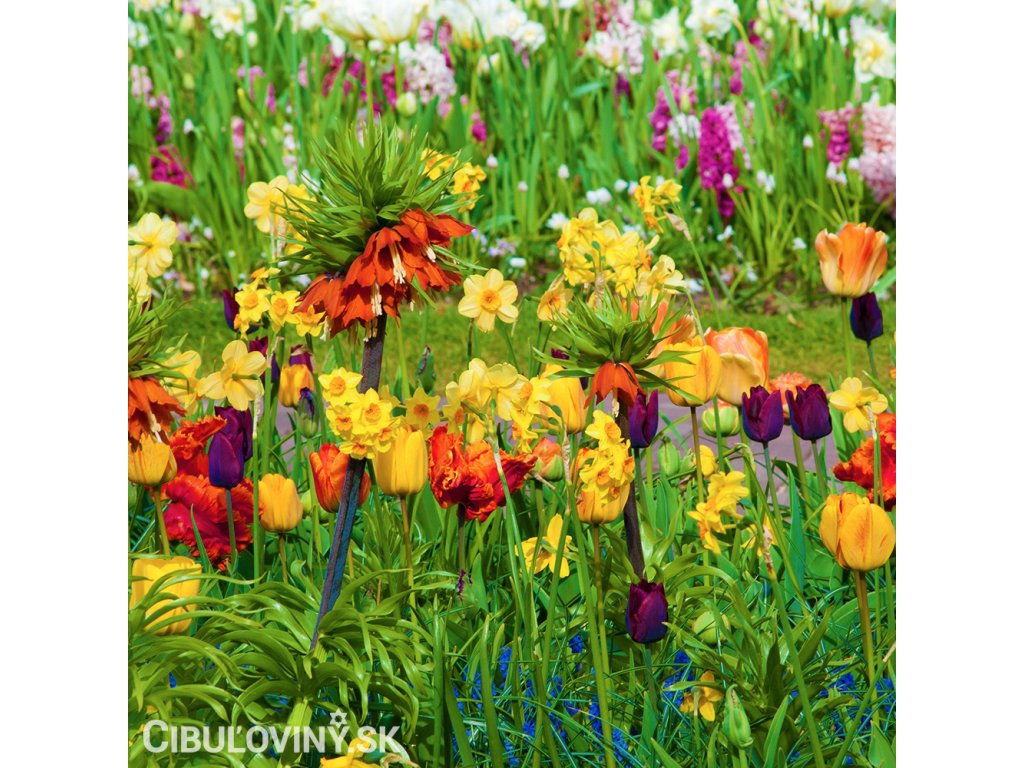 Zmes tých najkrajších jarných cibuľovín od snežienok, scíl, bledulí a modríc cez hyacinty, tulipány, narcisy, korunkovky až k cesnakom. Neobsahuje ľalie a fakle. Kvitnúce záhrada od jari do polovice leta.