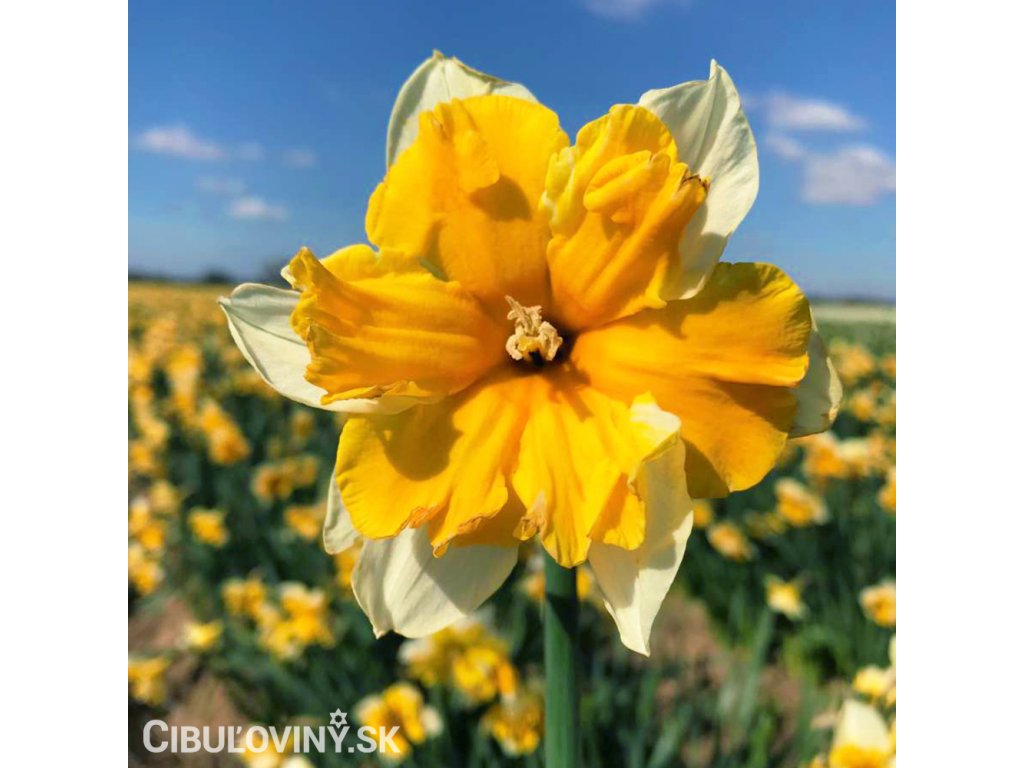 Unikátny vysoký narcis s orchideovým, deleným kvetom a sýtym oranžovým stredom. Výška 45 cm.