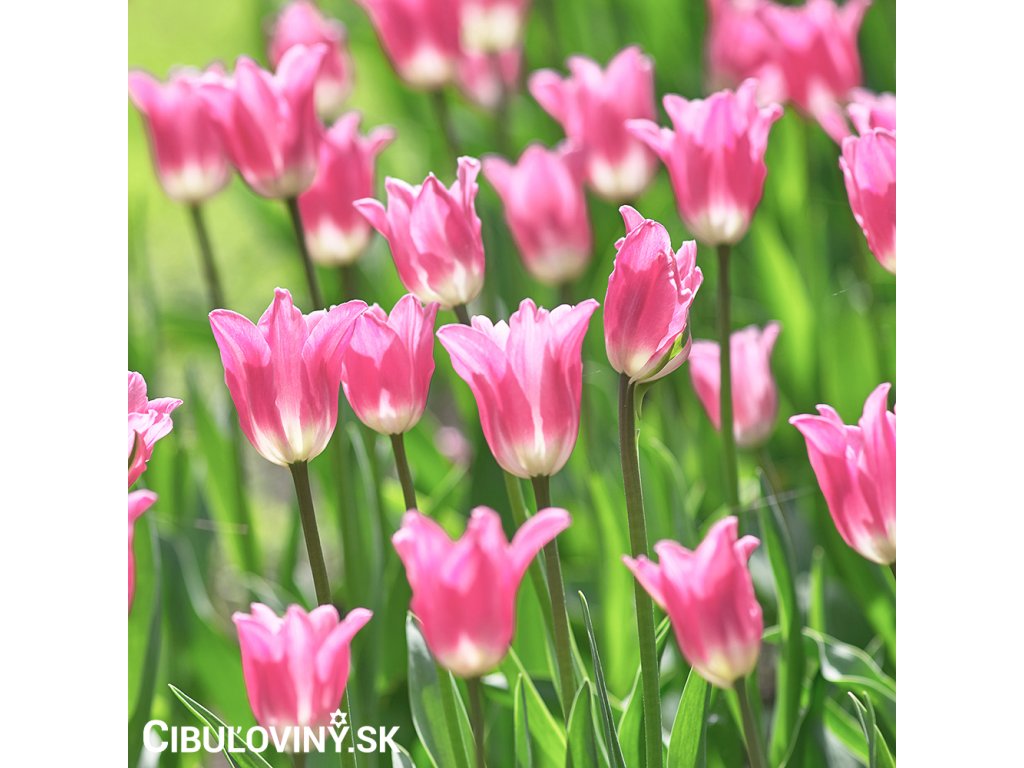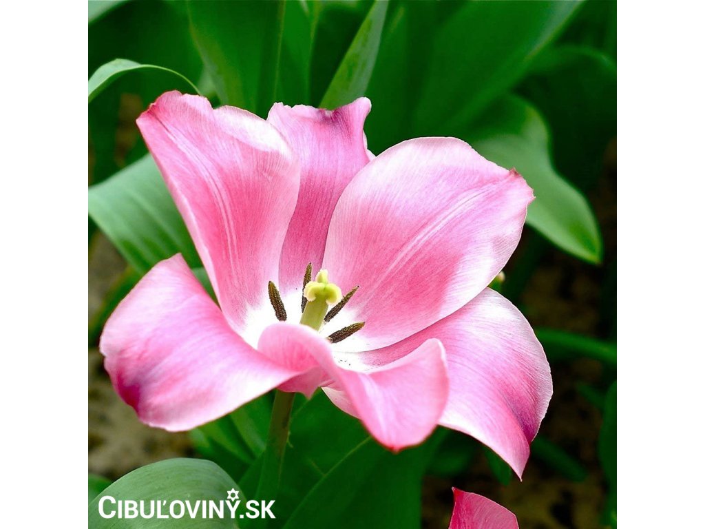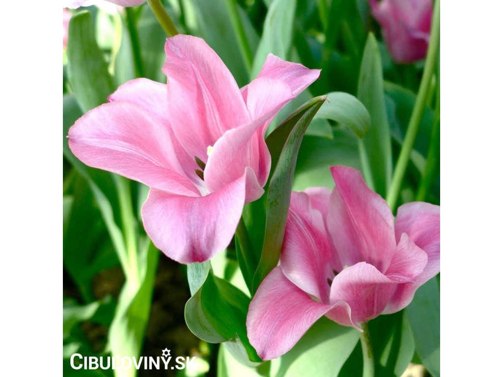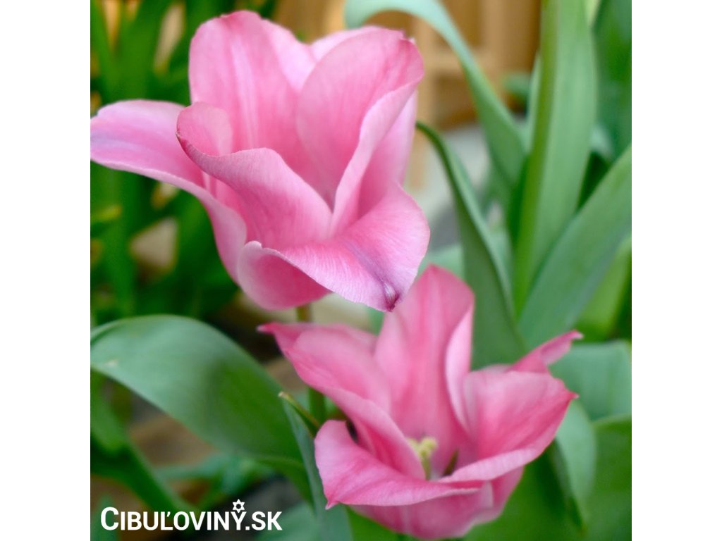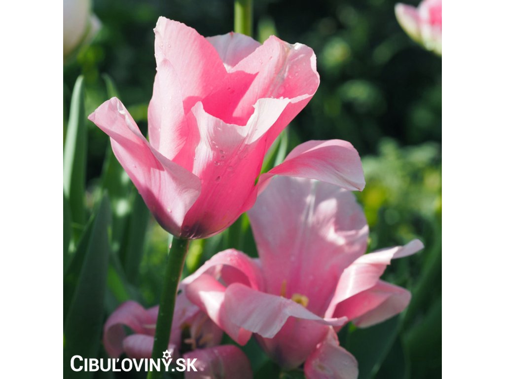 Nádherný ružovobiely tulipán na rozhraní kategórií Ľaliovokveté a Triumph. Výška 40 cm.