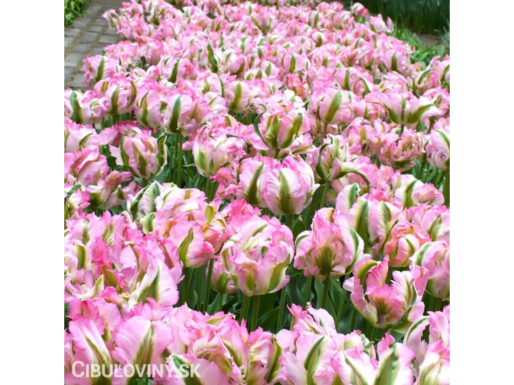 Zvrásnené a zakrivené okvetné lístky tulipánu Green Wave sú neobyčajne elegantné. Trblietavá ružová a krémová farba s občasnou zelenou je medzi tulipánmi veľmi neobvyklá. Výška 50cm.